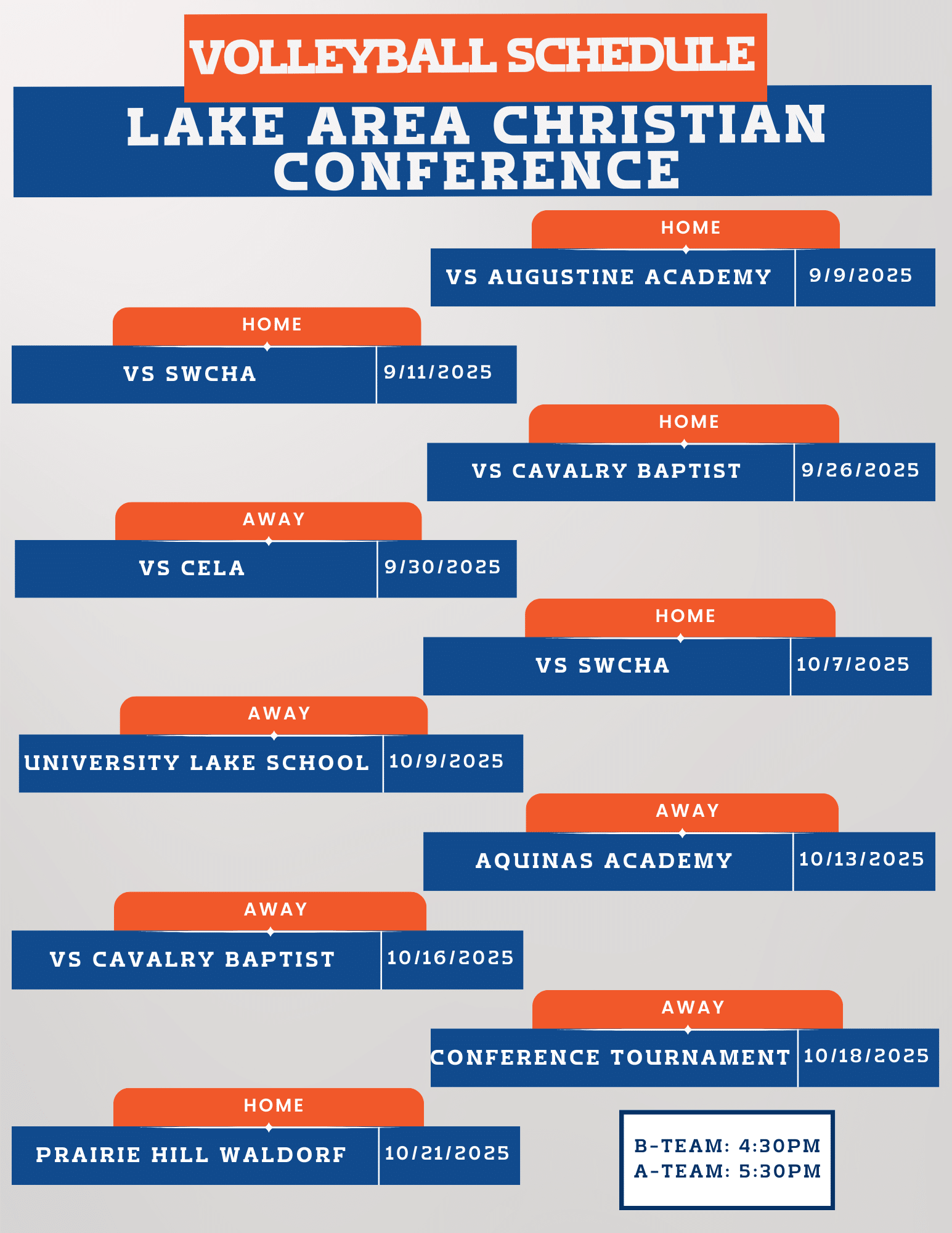 St. Paul’s Lutheran School believes that athletics are an important tool in teaching children to make use of their God-given talents and skills. Our athletic program supplements our physical education curriculum by providing additional activities for students in grades 5-8. We also have a few programs available for children in grades K-4 as a healthy and fun introduction to extracurricular activities.
